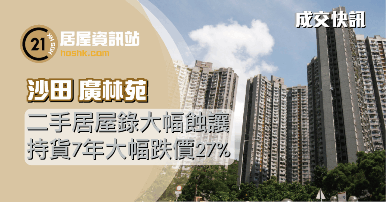 整體樓價回升,不過市場上仍錄得多宗蝕讓成交,最新沙田小瀝源廣林苑錄居屋勁蝕個案。世紀21奇豐物業第一城分行高級分行經理袁麗詩表示,最新成交為沙田廣林苑C座中層17室成交,單位實用面積376平方呎,屬2房2廳間隔,座向南望園景,原叫價360萬元,減幅5.6%,減價20萬至340萬元於自由市場成交,實用面積呎價9,043元。