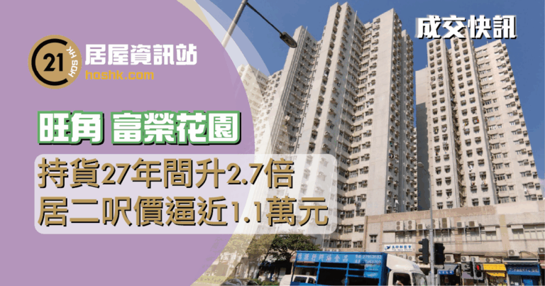 旺角富榮花園居二成交顯著增加 低層三房618萬元售 呎價逼近1.1萬元
